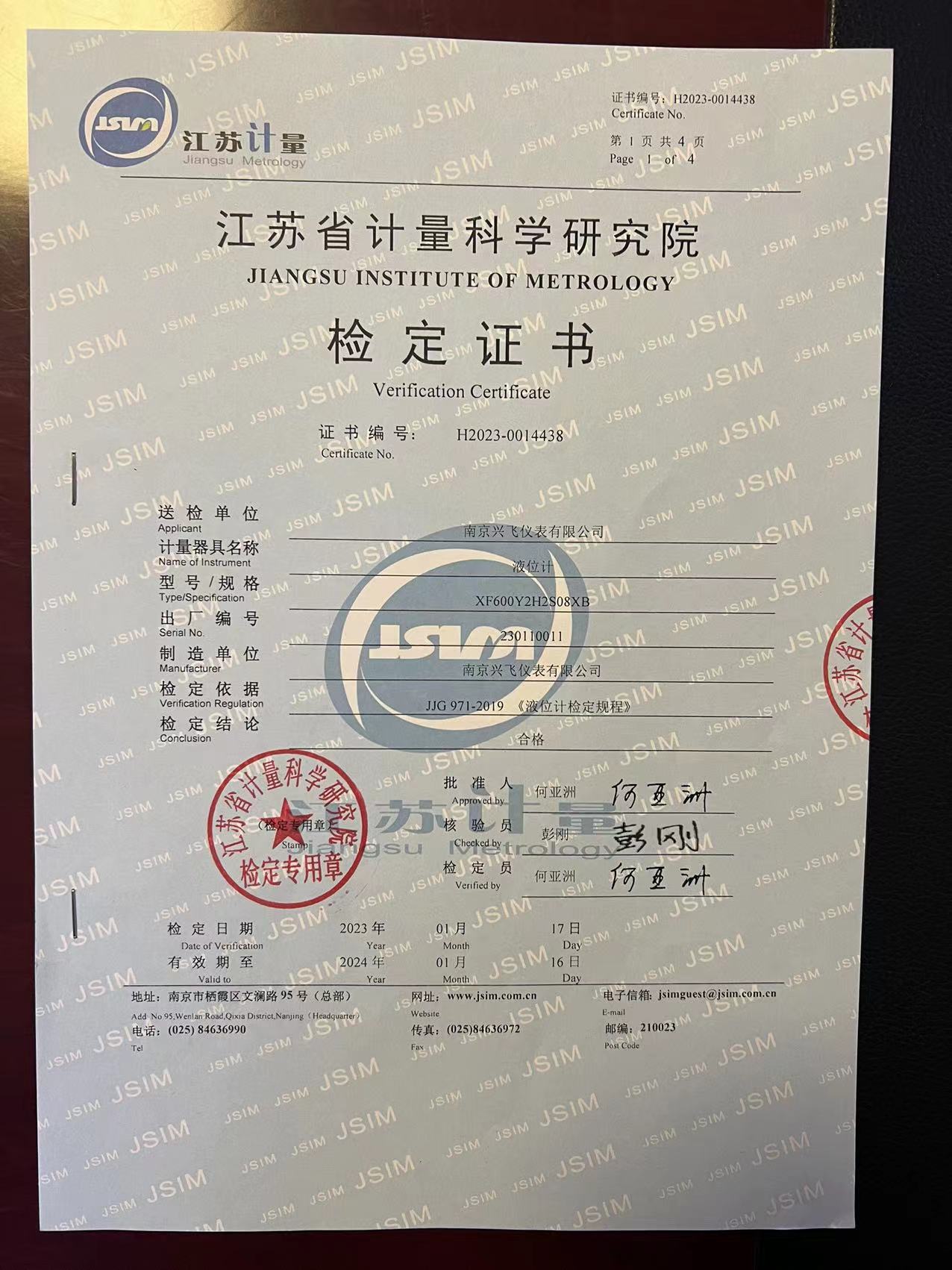液位計(jì)檢定證書